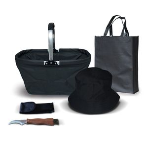 Zestaw grzybiarza kosz nóż czapka torba na grzyby